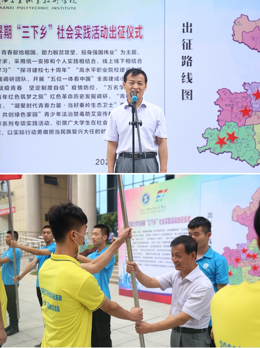 7月22日,我院大学生暑期“三下乡”社会实践活动出征仪式在精益楼广场与云端同步举行。院党委副书记贺天柱、宣传部部长黎炜、学工部部长郝军、各二级学院党总支书记、学工办主任、专职团干部、暑期社会实践各团队带队老师、学生代表200余人参加了出征仪式。仪式由院团委书记赵双军主持。