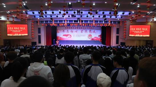 为庆祝中国共产党成立100周年,纪念五四运动102周年,4月29日下午,我校“不忘初心,紧跟党走”五四表彰大会暨第十五届社团文化节开幕式于明德堂举行。党委副书记贺天柱、党委副书记田昊、党委宣传部部长黎炜、党委组织部部长王超联、党委学工部部长、学生处处长郝军,各二级学院党总支书记、团总支书记以及团员代表1200余人参加了大会。会议由团委书记赵双军主持。