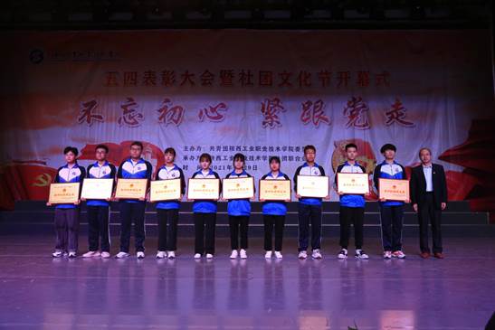 大会在庄严的国歌声中拉开帷幕。党委学工部部长、学生处处长郝军宣读了《共青团陕西工业职业技术学院委员会关于表彰2020年度先进集体、先进个人的决定》,党委组织部部长王超联为青春榜样、优秀团干部、优秀团员、优秀志愿者获奖代表颁发了荣誉证书;党委宣传部部长黎炜为“五四红旗团支部”获奖代表颁发了奖牌;党委副书记田昊为获得“五四红旗团总支”的信息工程学院、商贸与流通学院、电气工程学院、航空工程学院颁发了奖牌。大会共对26个“五四红旗团支部”、19名“青春榜样”、25名“优秀志愿者”、192名“优秀团干部”、576名“优秀团员”予以表彰。信息工程学院数媒1910班韦梦雨代表全体获奖同学作了获奖感言。