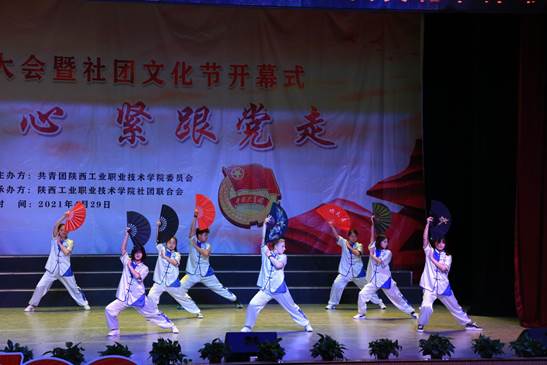 在集体奏唱了团歌后,在场师生共同观看了第十五届社团文化节文艺演出。演出在街舞协会带来的热辣街舞《urban dance》中拉开序幕。整场晚会节目编排新颖,形式多样,融歌曲、说唱、舞蹈、相声、小品、等多种表演于一体,亮点频频令人耳目一新。说唱社带来的说唱《4x4》给我们带来了听觉上的盛宴;武术协会带来的《武术表演》刚柔并济、气势恢宏、令人陶醉;由财经与旅游学院带来的小品《看病》带给观众无尽的欢乐与感动;汉服社带来的舞蹈《山鬼》给大家带来了中国传统文化风情;大学生艺术团带来的歌曲《男孩》给台下观众带来一波波强烈的听觉冲击、特邀节目——西藏民族大学的舞蹈《拉茶木》使藏族人民能歌善舞又善良质朴的形象跃然台上;汽车工程学院带来的相声《我有梦想》亮点频现、妙语连珠,幽默风趣的台词引得掌声不断,笑声连连;大学生艺术团的舞蹈《hate》和吉他协会的歌曲《失恋阵线联盟》点燃了现场热情,台上台下融成了激情四溢的海洋;开幕式在大学生艺术团带来的朗诵《一条路,一盏灯》中完美落幕,同学们激情澎湃、慷慨激昂地抒发了坚定不移跟党走的理想信念,为建党百年献上我校学子最诚挚的祝福。整场演出以动人的歌声,以激情、曼妙的舞姿展示了我院青年学子的青春风采,展现了缤纷多彩的大学生活,点燃了广大团员青年奋进的激情。