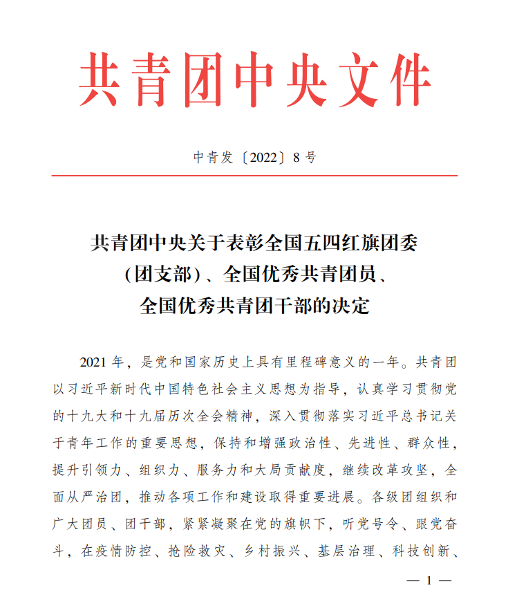 在中国共产主义青年团建团100周年到来之际,4月13日团中央发布了《共青团中央关于表彰全国五四红旗团委(团支部)、全国优秀共青团员、全国优秀共青团干部的决定》(中青发【2022】8号),经全校选拔推荐、团省委、团中央审核遴选,财经与旅游学院团总支获“全国五四红旗团支部”荣誉称号。